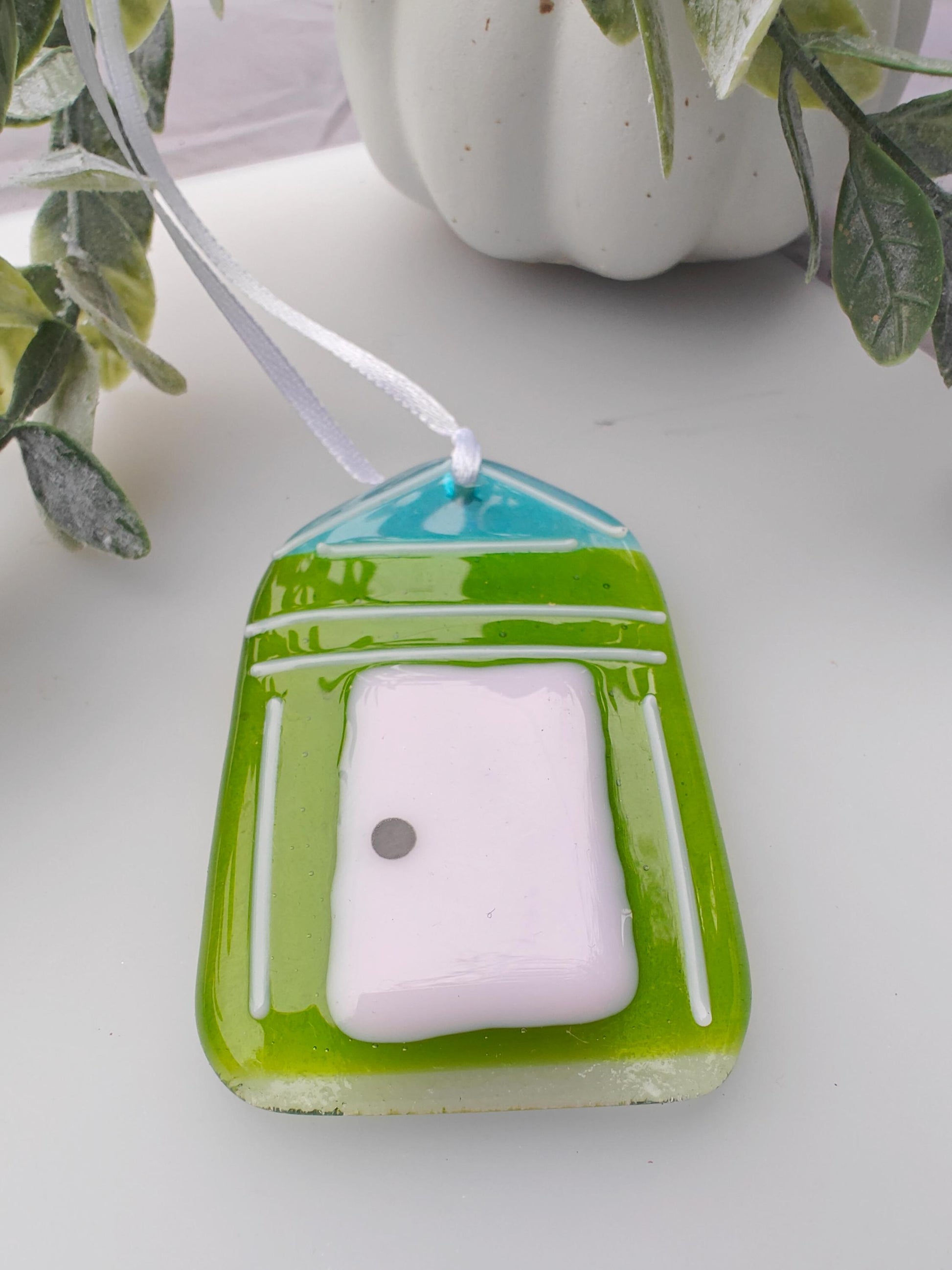 Hand crafted from fusing glass which has been hand cut and fused several times in a kiln.