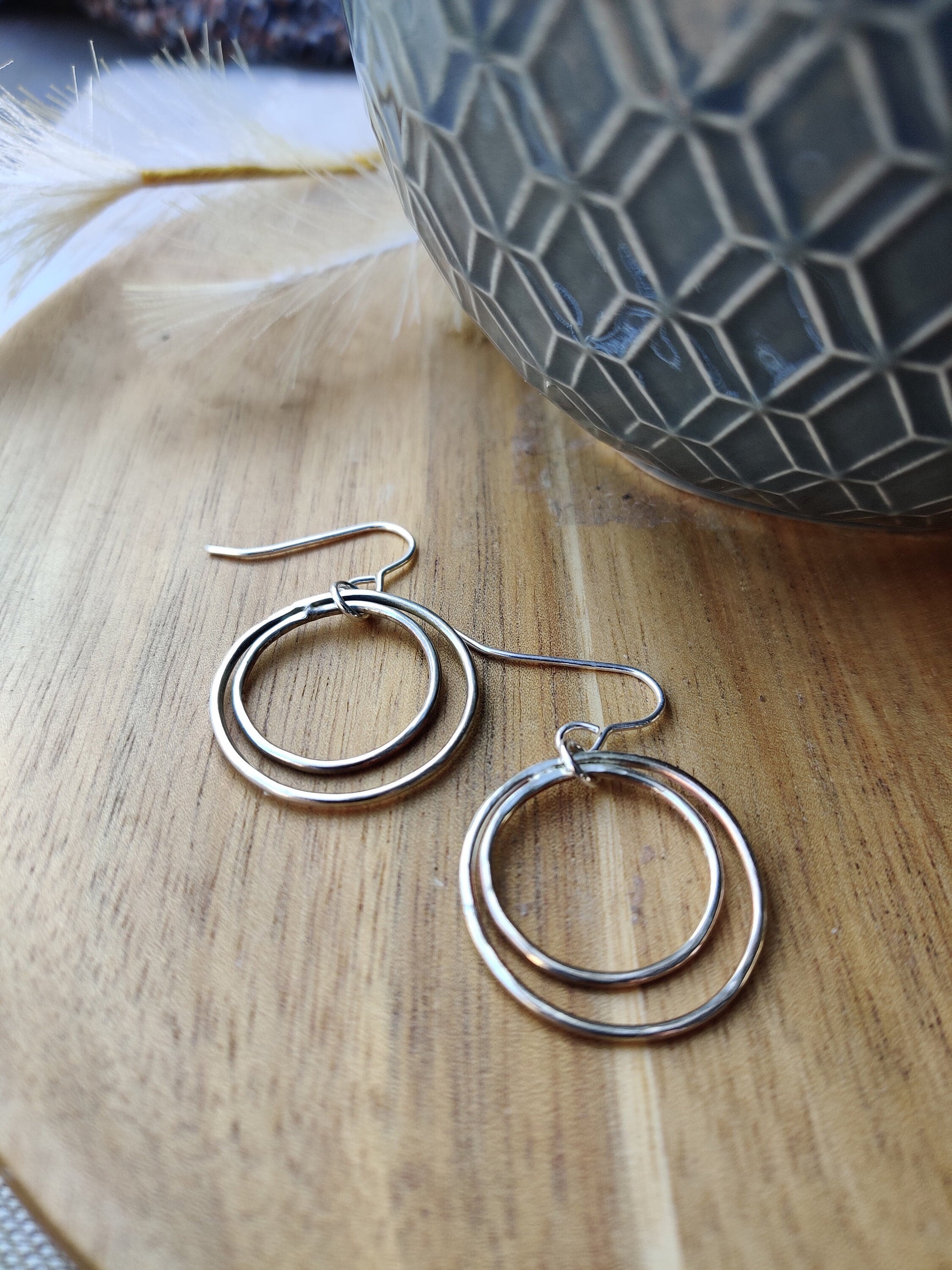Each piece of jewellery is handmade in my North Somerset studio. Packaging: The earrings will be packaged in an organza bag.Silver double hoop earrings made from sterling silver.