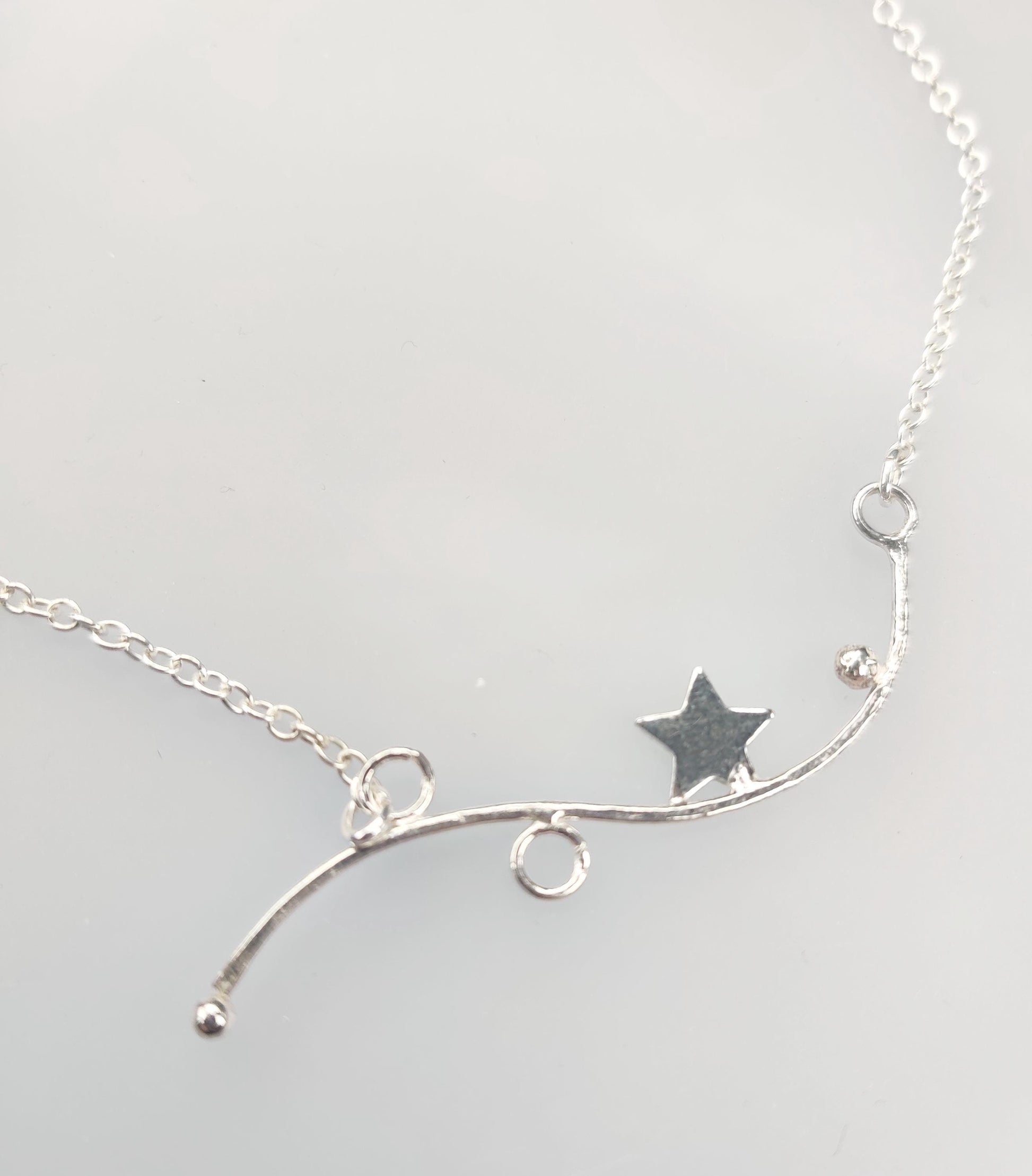 Hand-made from recycled sterling silver. This fun and unusual necklace features a shooting star on a silver wire.