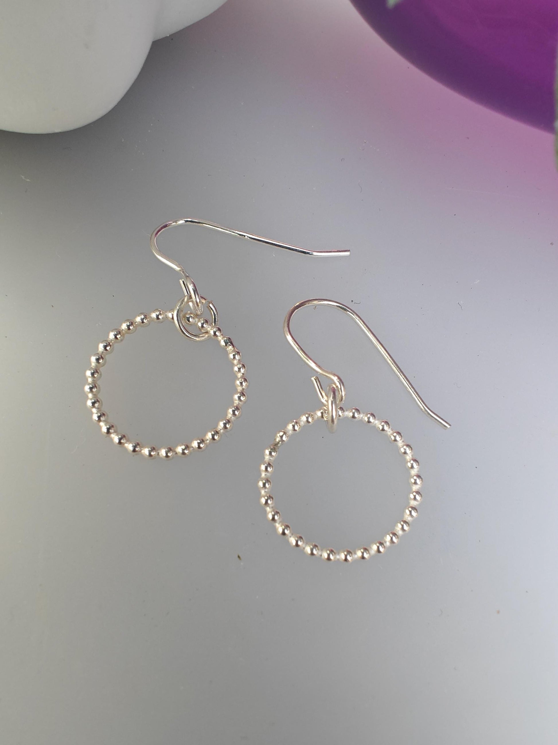 The earring measures 1.5cm in diameter with a sterling silver ear wire attached.