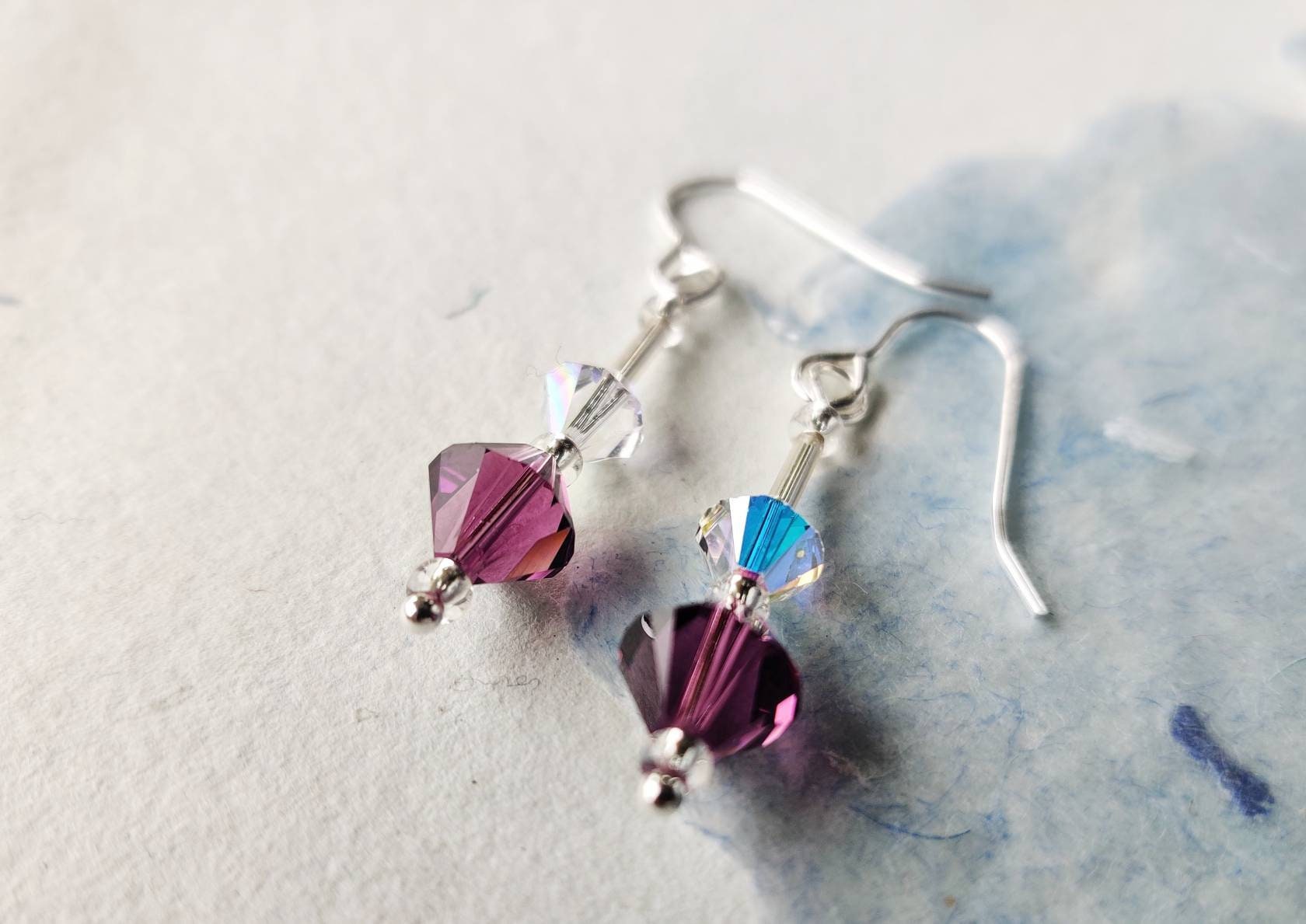 Beautiful sparkly Swarovski crystal earrings in plum colour.